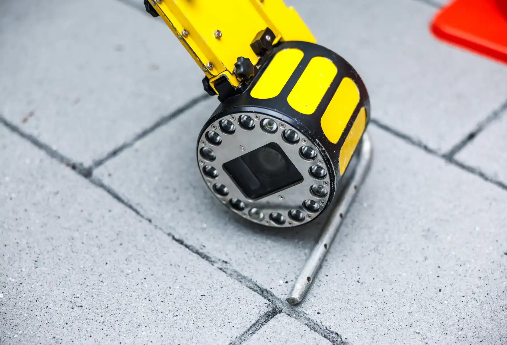「管口(かんぐち)カメラ調査」は、マンホールの中に入ることなく地上から安全に下水管の中を点検できる調査方法です。 専用の長いポール(操作棒)の先端に、強力なLEDライトと高性能カメラを取り付けマンホールの入り口から差し込みます。手元のモニターでリアルタイムに映像を確認しながら、管の奥(約10m〜15m先)までの状況を鮮明に動画撮影し異常箇所の点検をすることができます。